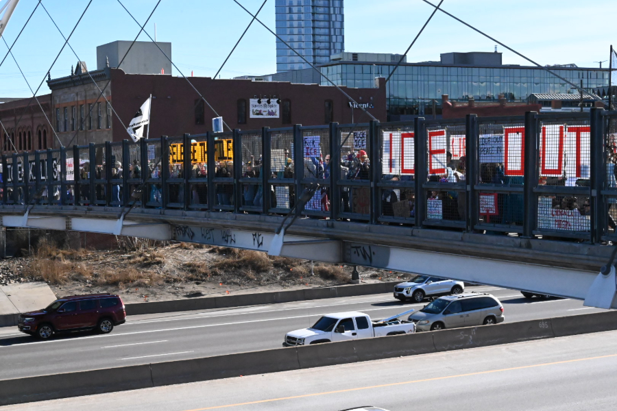 By July, enthusiasm for nationally planned protests began to wane in Denver. A Good Trouble Lives On protest, named in honor of late Congressman John Lewis, drew 2,000 protesters, and the turnouts continued dropping from there. Rich began looking for something beyond Capitol rallies, and came across information about a bridge protest on the r/DenverProtests Reddit page, which became a hub for local organizers in early 2025. This particular bridge protest was to be held at the Dayton Station pedestrian bridge over I-225, by a light rail station near Aurora and southeast Denver.