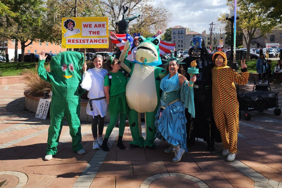 The Portland frog incident came just a couple of weeks before a nationwide No Kings 2 protest in October. In Denver, the protest drew an estimated 8,000 people — some estimates put the number far higher — and costumes were noticeable in the crowd. Some members of the Colorado Bridge Trolls showed up with speakers, dance moves, signs and costumes for drivers passing down Lincoln Street. Rich appeared to be the only Darth Vader, but there were plenty of Lady Libertys, with Rey among them. Other protesters, including Trolls and non-Trolls, dressed up like characters from South Park, unicorns, a lobster with a guitar (i.e., a “rock” lobster), and an axolotl, a rare and endangered amphibian from Mexico.