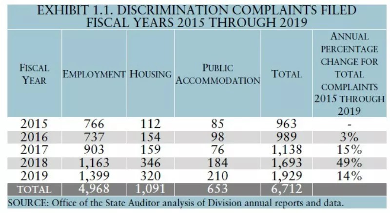 To get more details, click to read Colorado Auditor’s Report: Colorado Civil Rights Commission Management of Civil Rights Discrimination Complaints.