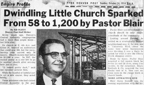 Blair remained a celebrated religious figure until his death in 2009, lauded for pioneering megachurches and television evangelism in Denver.