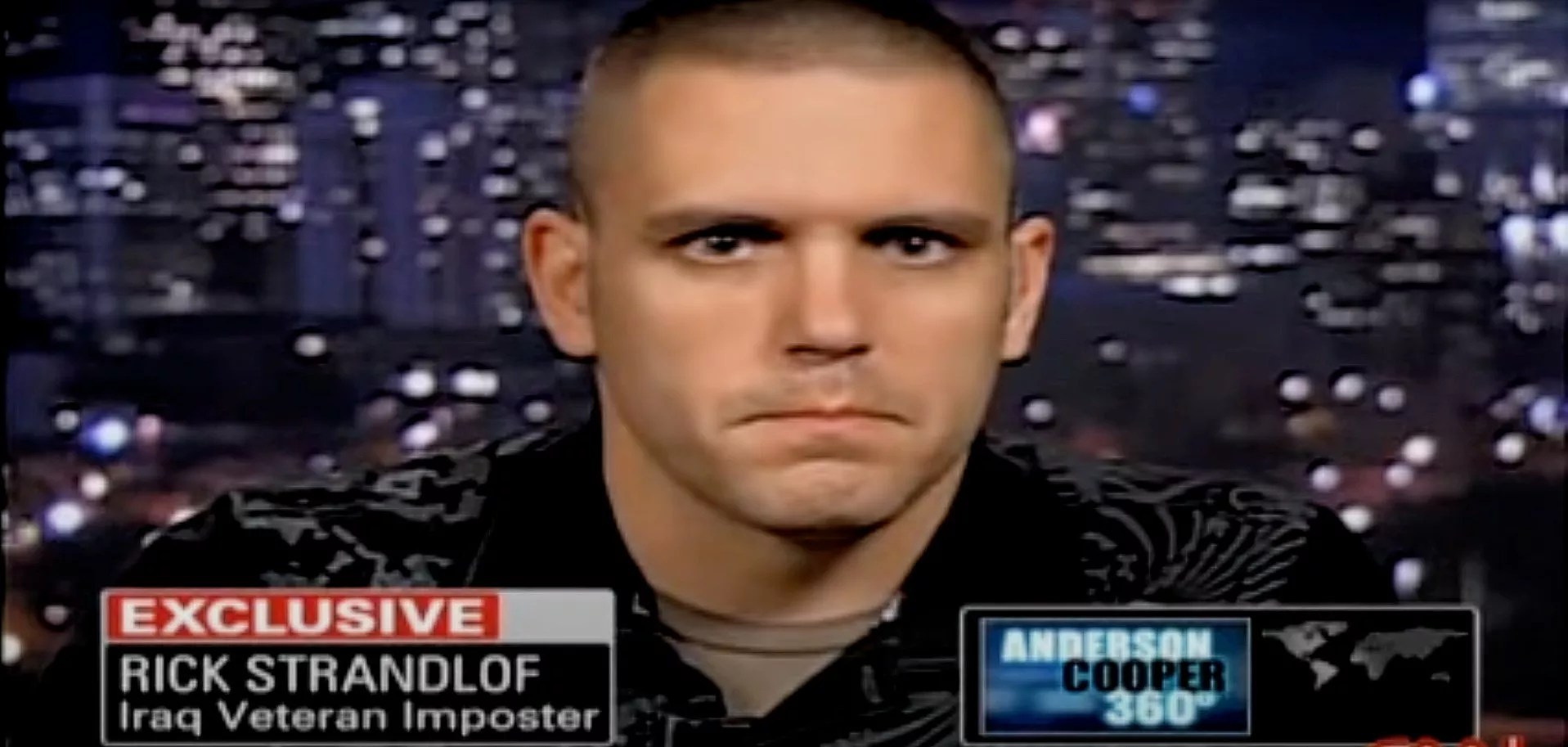 Rick Strandlof speaking to Anderson Cooper about his time masquerading as a veteran.