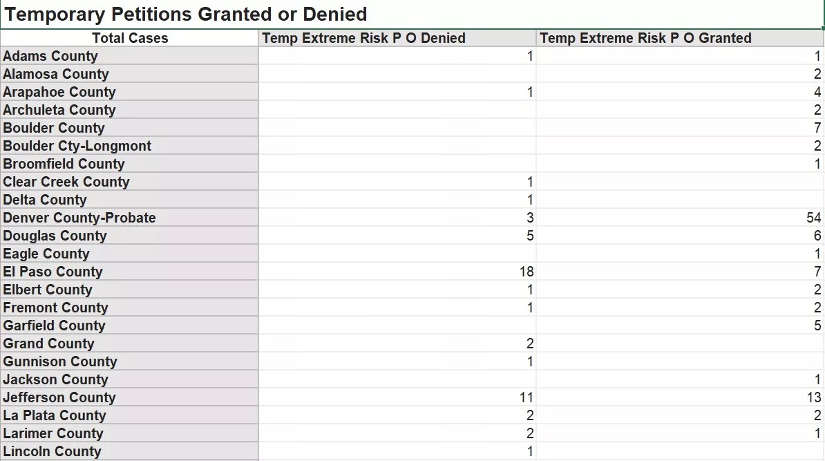 This is the third in a series about extreme risk protection orders two years after they were legalized in Colorado. Click to read part one, “Gun Protection Orders Requested in Most Colorado Counties That Rejected Them,” and part two, “How Many Colorado Gun Protection Orders Were Actually Granted.”