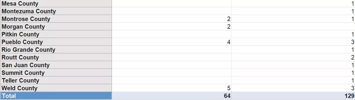 Here are the number of petitions that were either granted or denied in the 37 Colorado counties where they were filed in calendar years 2020 and 2021: