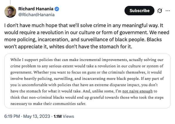 Polis lauded Hanania and Decker as “intellectuals” who “are doing actual thinking which is rare these days,” though he noted that his promotion of the men “doesn’t mean I agree with them most or all of the time.”