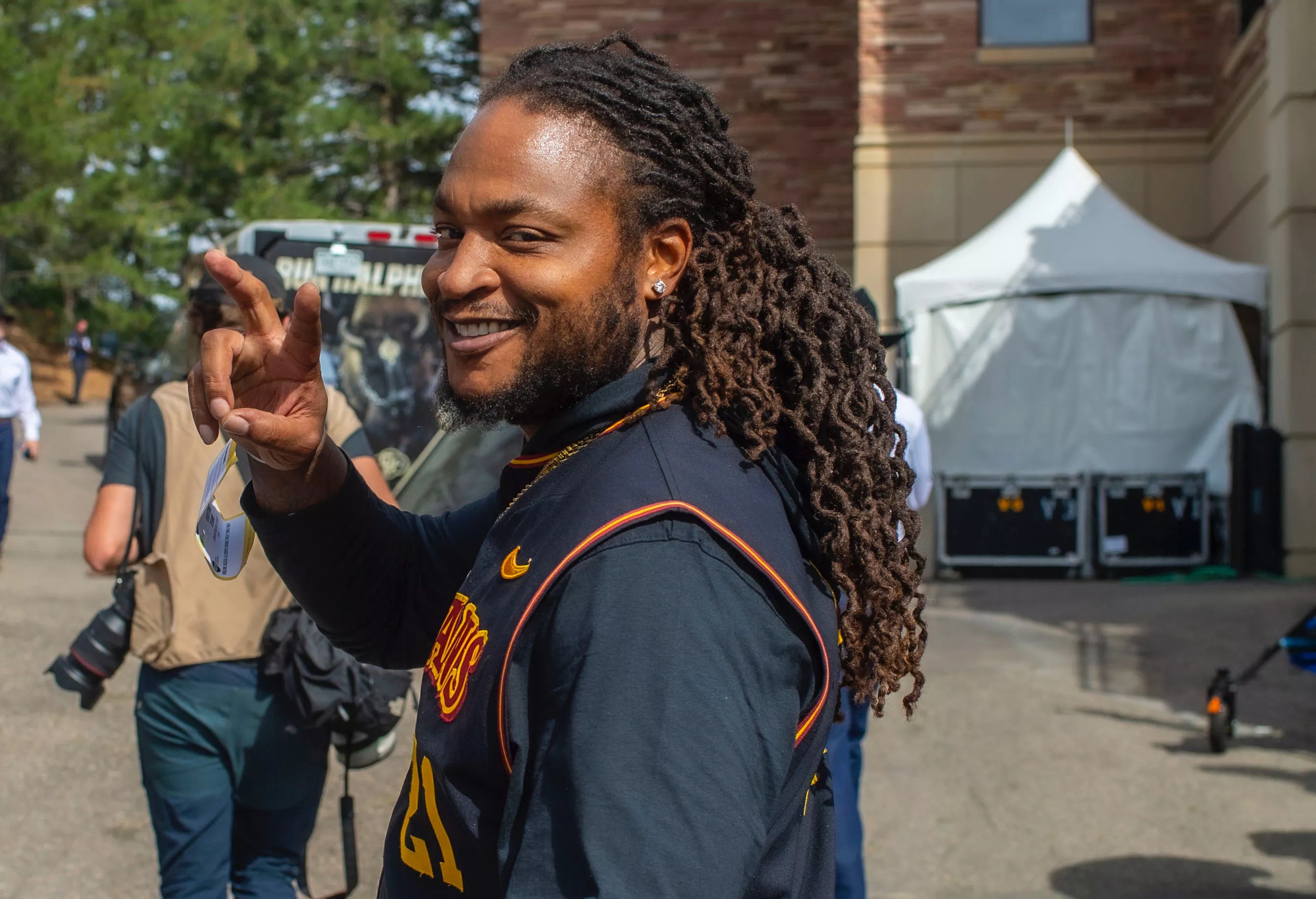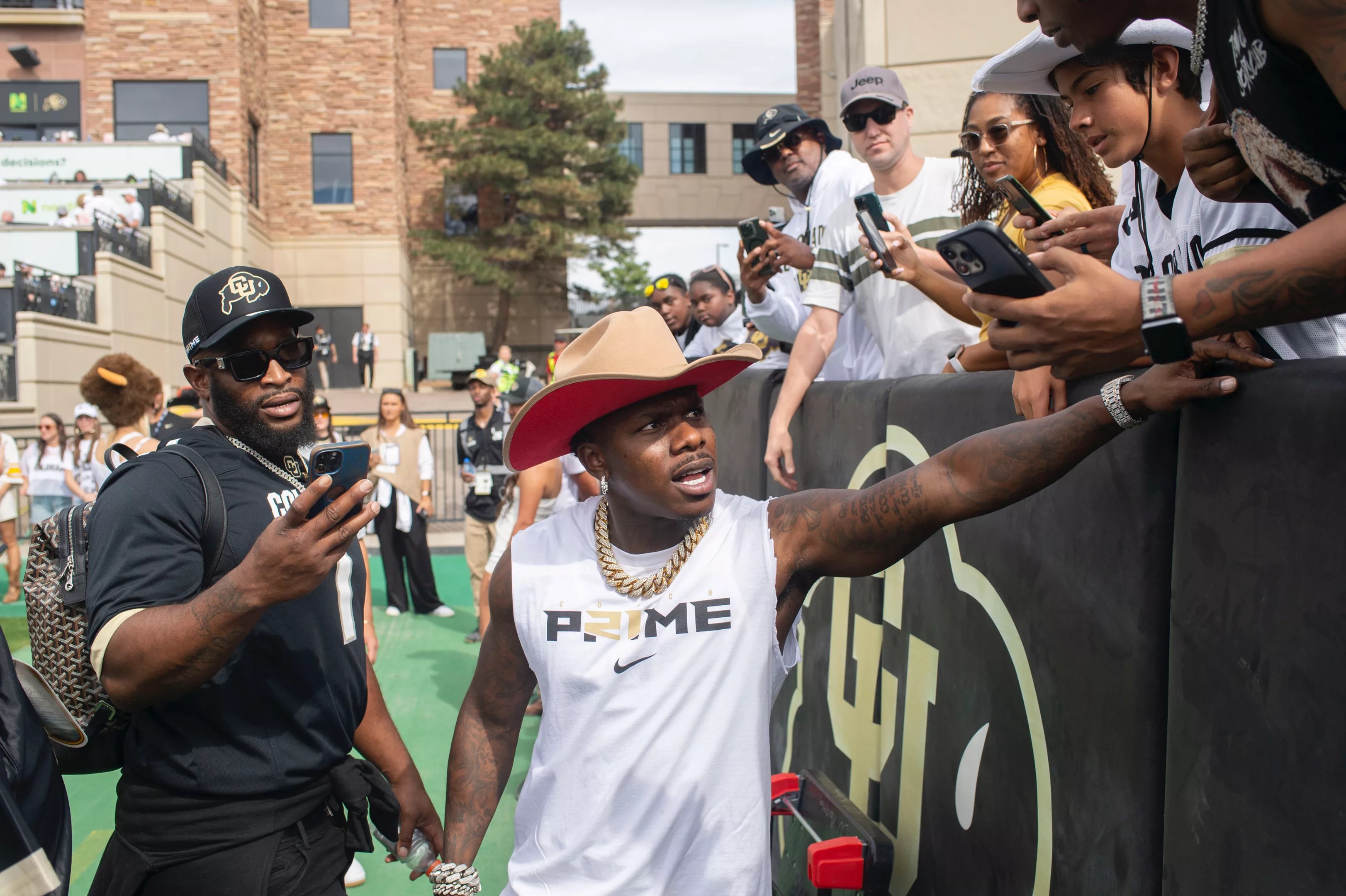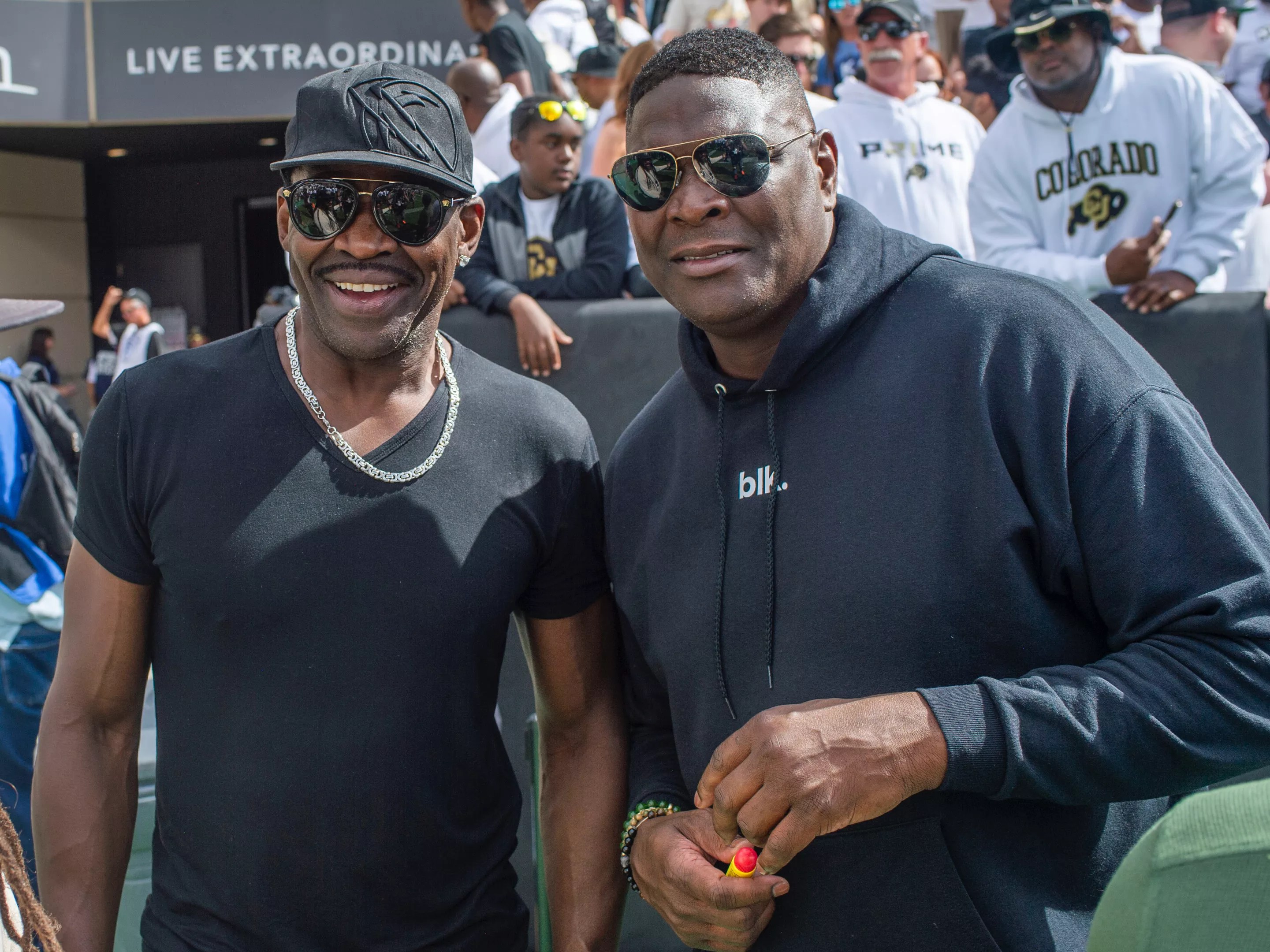 Chatfield High School grad and USC national champion LenDale White was also on the Colorado sideline, rocking Coach Prime gear.
