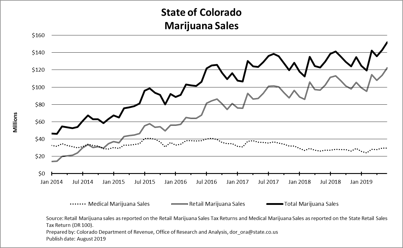 As more and more states legalize it, retail marijuana has never been more readily available in this country. But that’s not stopping Colorado’s pot industry from breaking record after record. May 2019’s sales set a monthly record, and they were even higher in June, according to the state Department of Revenue.