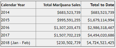 Overall sales for the cannabis industry were $112.5 million in February, down $5.48 million from the month before but nearly $6 million higher than February 2017. And if past performance is any indication, sales figures should rebound in March.