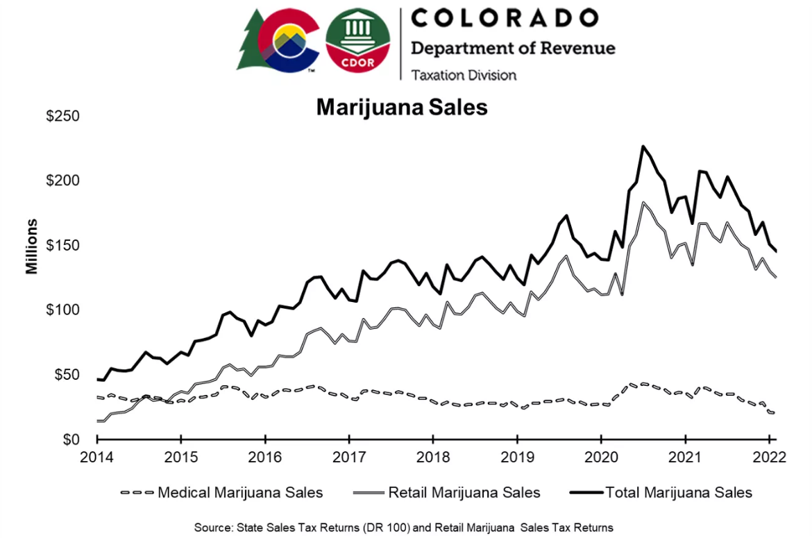 Recreational marijuana sales accounted for nearly $125 million in February, the lowest total since February 2020. And medical marijuana sales are on even sharper decline.