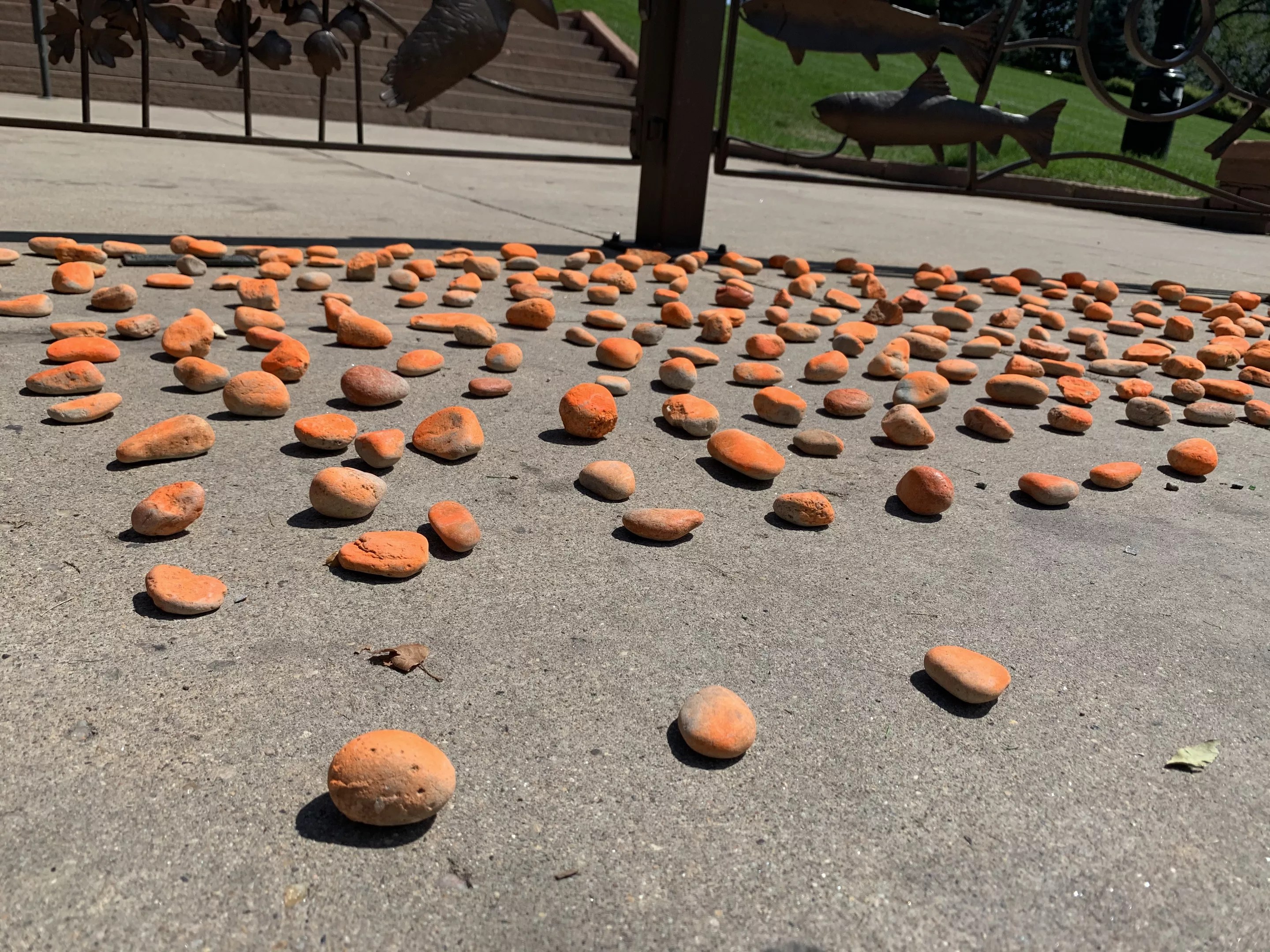 Advocates laid out close to 900 orange stones to represent those who contracted COVID-19 in Colorado prisons. Three have died.
