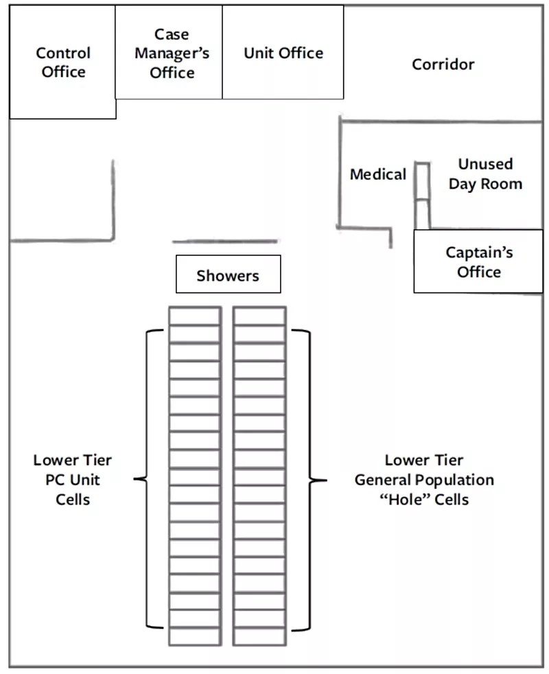 The floor plan of the Buena Vista Correctional Facility protective-custody unit.