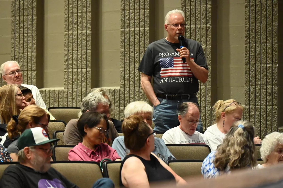 Residents at the town hall said they were worried about Trump’s threats to elections and the environment and his use the military.