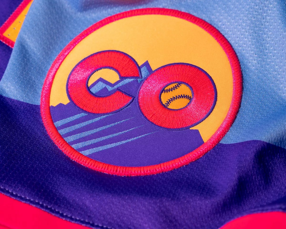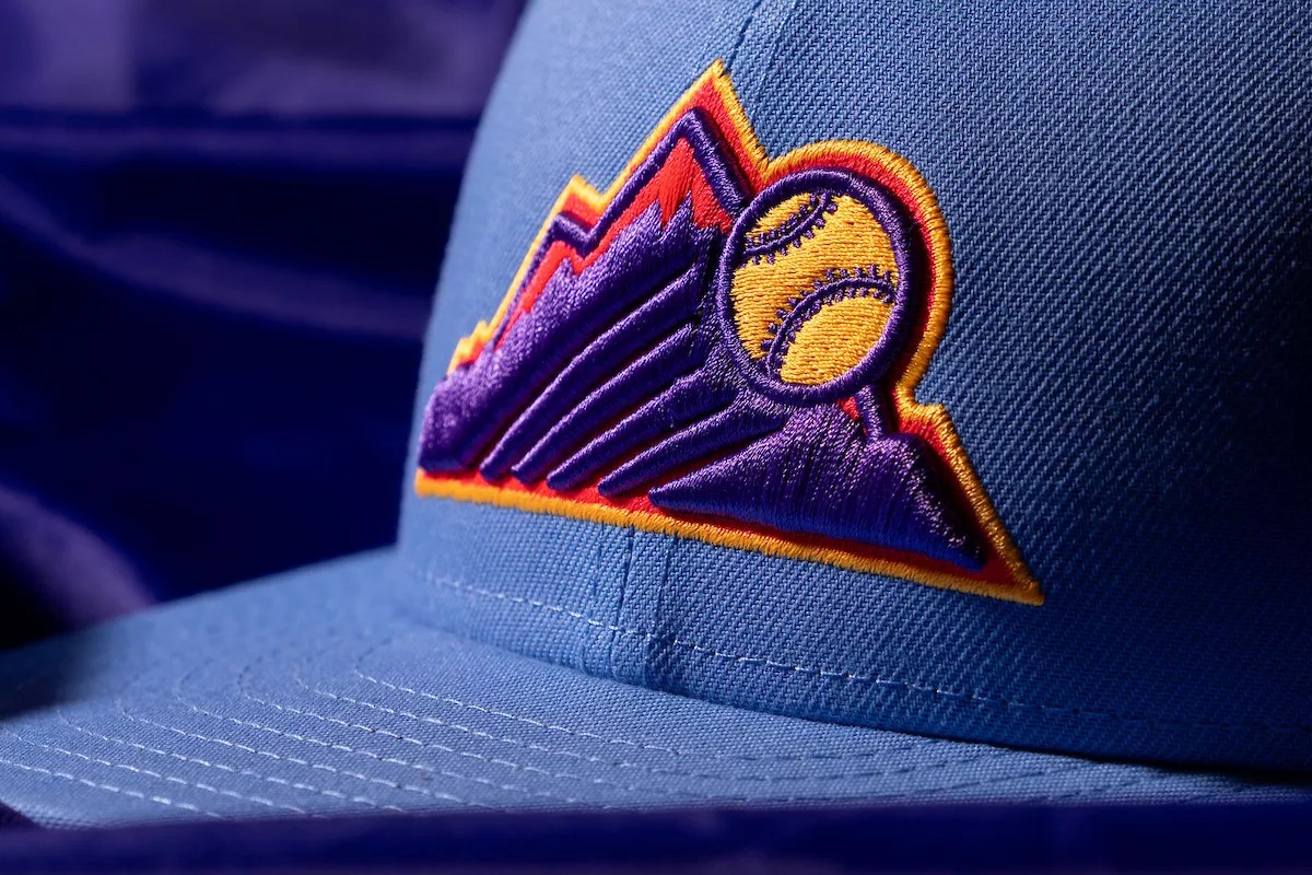 The base colors of the jersey are baby blue and purple, with the team explaining that the color palette is also meant to evoke Colorado’s gorgeous sunsets with yellow, orange and red accent colors. Both the hats and the jersey include a logo in the shape of a mountain with a baseball flying over the peak.