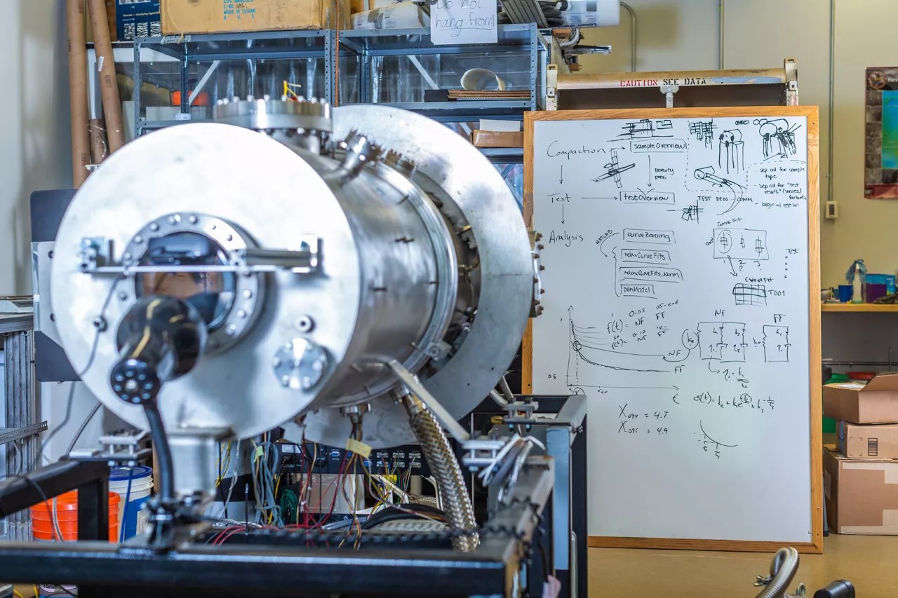 A vacuum chamber, just one piece of equipment in the Center for Space Resources laboratory.