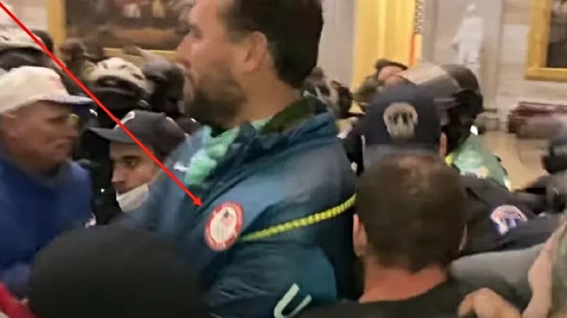 Moreover, “open-source research revealed that KELLER is a three-time Olympic athlete and Olympic Gold Medalist, and PERSON 1 appears to be wearing a United States Olympic Team jacket in the video showing him in the Rotunda.” The doc shows off a duplicate of the Olympic patch, too.