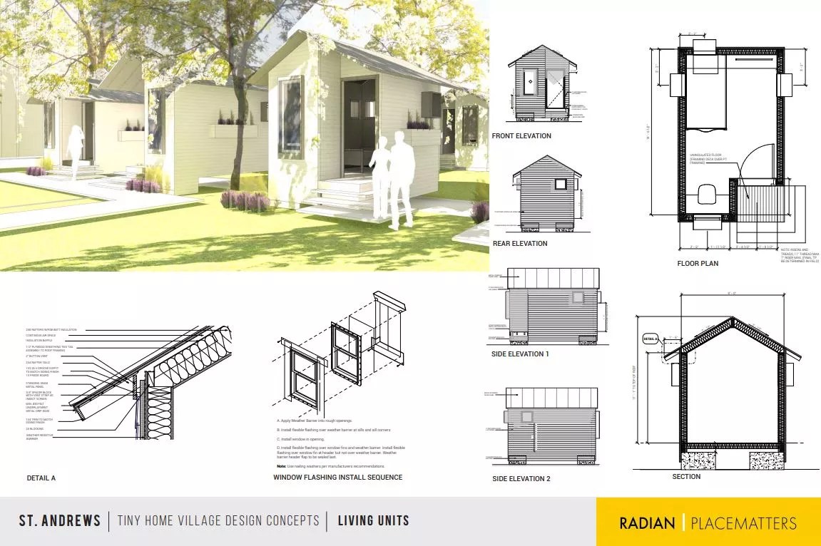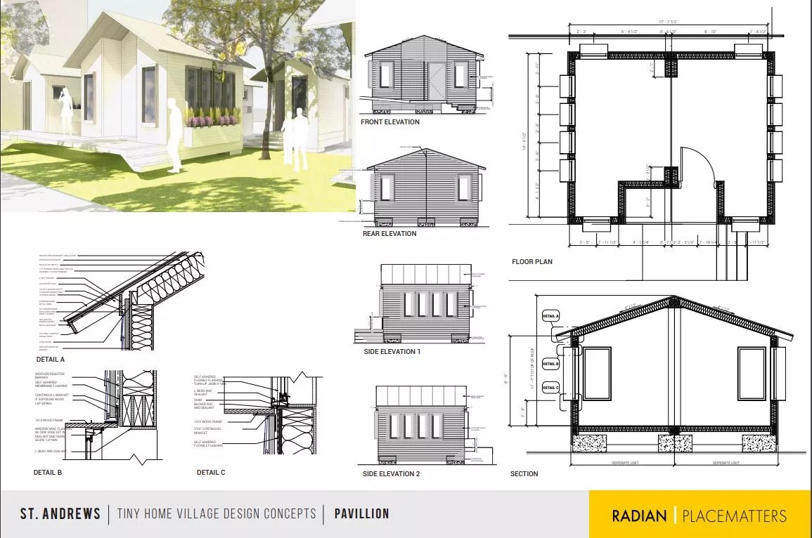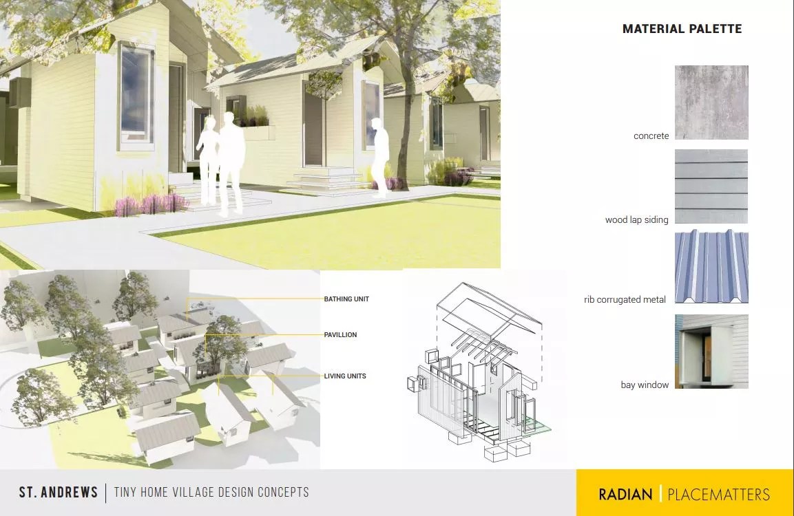 Chandler says that the St. Andrews tiny home village will house women and transgender women, who are among the most vulnerable of Denver’s homeless population. In addition to the tiny homes, the proposed village will include a pavilion and bathhouse.