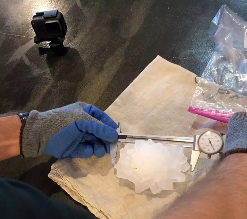 Severe storms are nothing new here in Colorado, nor is hail. But one particularly severe thunderstorm produced the largest hailstone ever recorded in the state. On Tuesday, August 13, the Colorado Climate Center and the National Weather Service measured a hailstone that had fallen northwest of Bethune. The maximum diameter was 4.83″, which exceeded the longstanding state record of 4.5″. To put it into perspective, a softball measures 3.5″ in diameter; the Bethune hailstone was 22 percent larger.