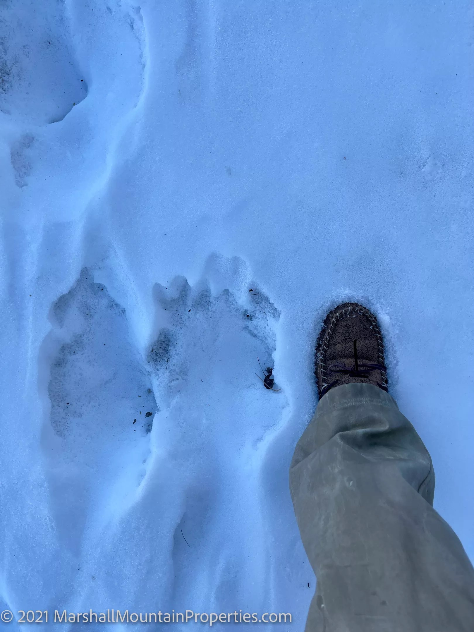 A potential wolf print pictured next to Charlie Marshall’s foot.