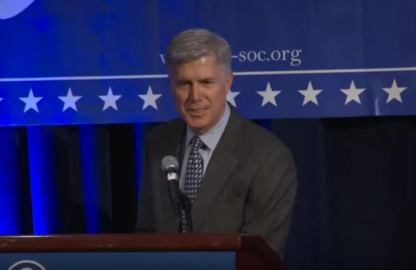 Neil Gorsuch speaking at an event for the Federalist Society in 2013.