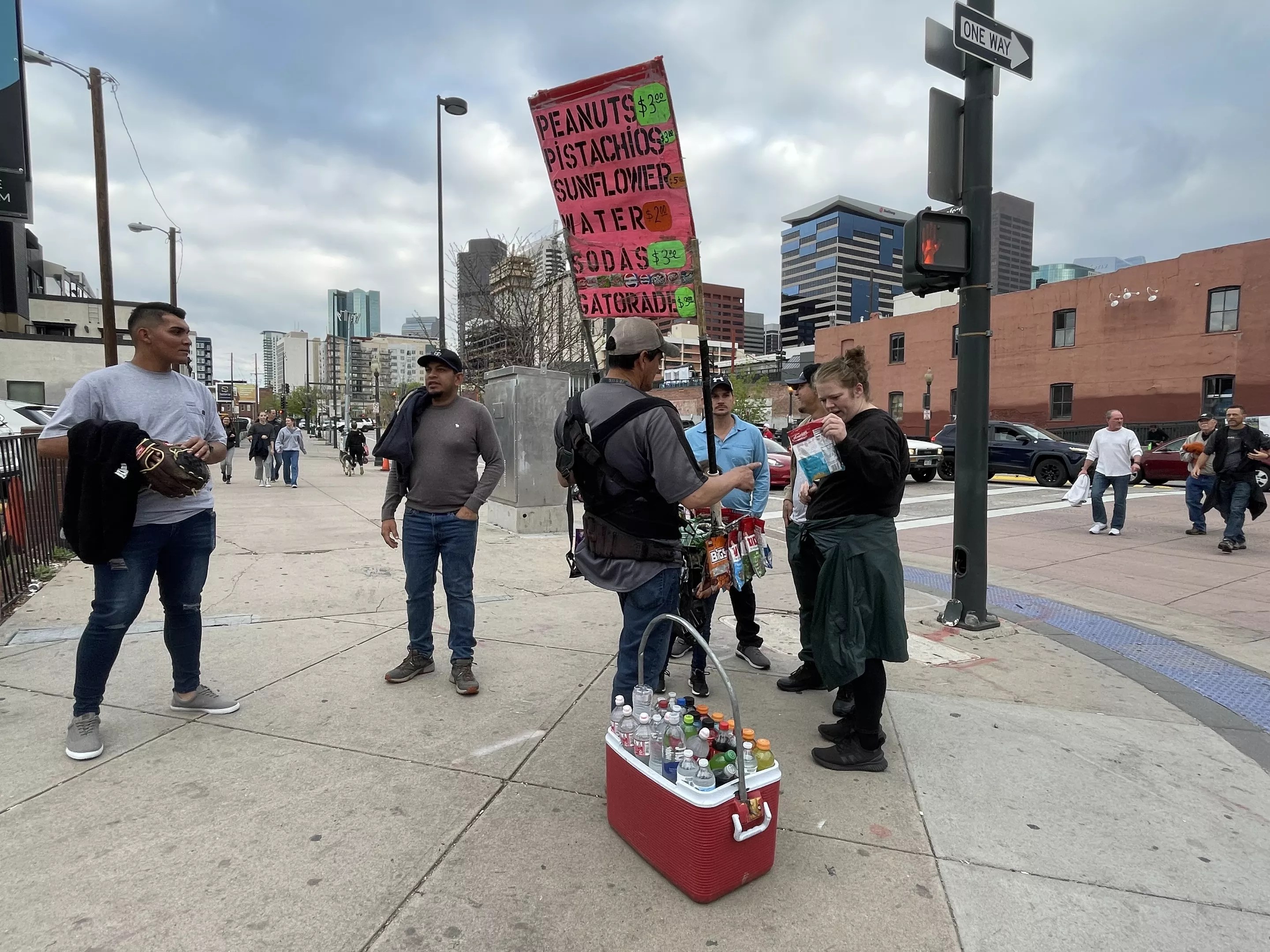 “If it’s hot, it’s fine,” says vendor Jesus Rodriguez, who’s been selling snacks before Rockies games for more than two decades. “If it’s cold, no business.”