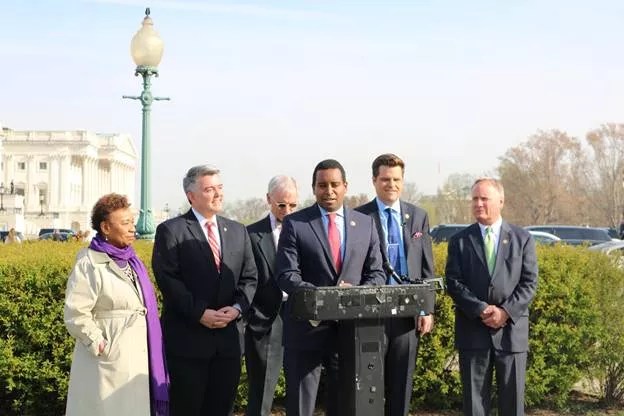 Colorado congressman Joe Neguse (center) and Senator Cory Gardner (second from left) announce the 2019 States Act in Washington, D.C.