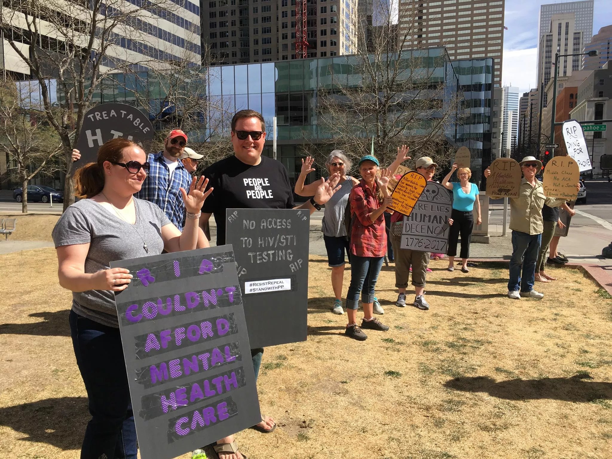 Starting about a month ago, Shumake and other Indivisible Denver members (the Facebook group has more than 5,000 members), launched the Sunday Gardner, and some of the demonstrations that followed have been elaborate. For one rally, he says, “we protested the attempted repeal of the Affordable Care Act with an old-fashioned die-in, where we came with cardboard tombstones and laid down in front of the building. Then we marched up the 16th Street Mall and died on the steps of the Capitol.”