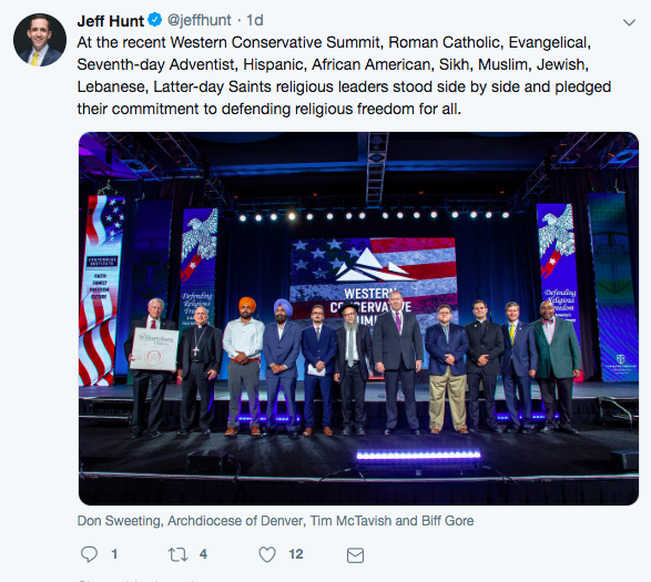 Jeff Hunt, the current director of the Centennial Institute, praised his predecessor’s speech during the Summit. On July 16, as criticism mounted, Hunt tweeted a picture of speakers at the Summit coming together to display apparent religious diversity, consensus and tolerance by reaffirming the Williamsburg Charter. “Religious leaders stood side by side and pledged their commitment to defending religious freedom for all,” he wrote.