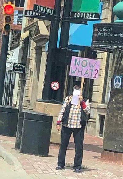 And he was not alone: We also witnessed multiple instances of what appeared to be resentment aimed at mask-wearers, as if those following Polis’s recommendation were obviously outsiders who didn’t belong in an area where an encumbered nose or mouth was considered to be a violation of an American’s fundamental right.