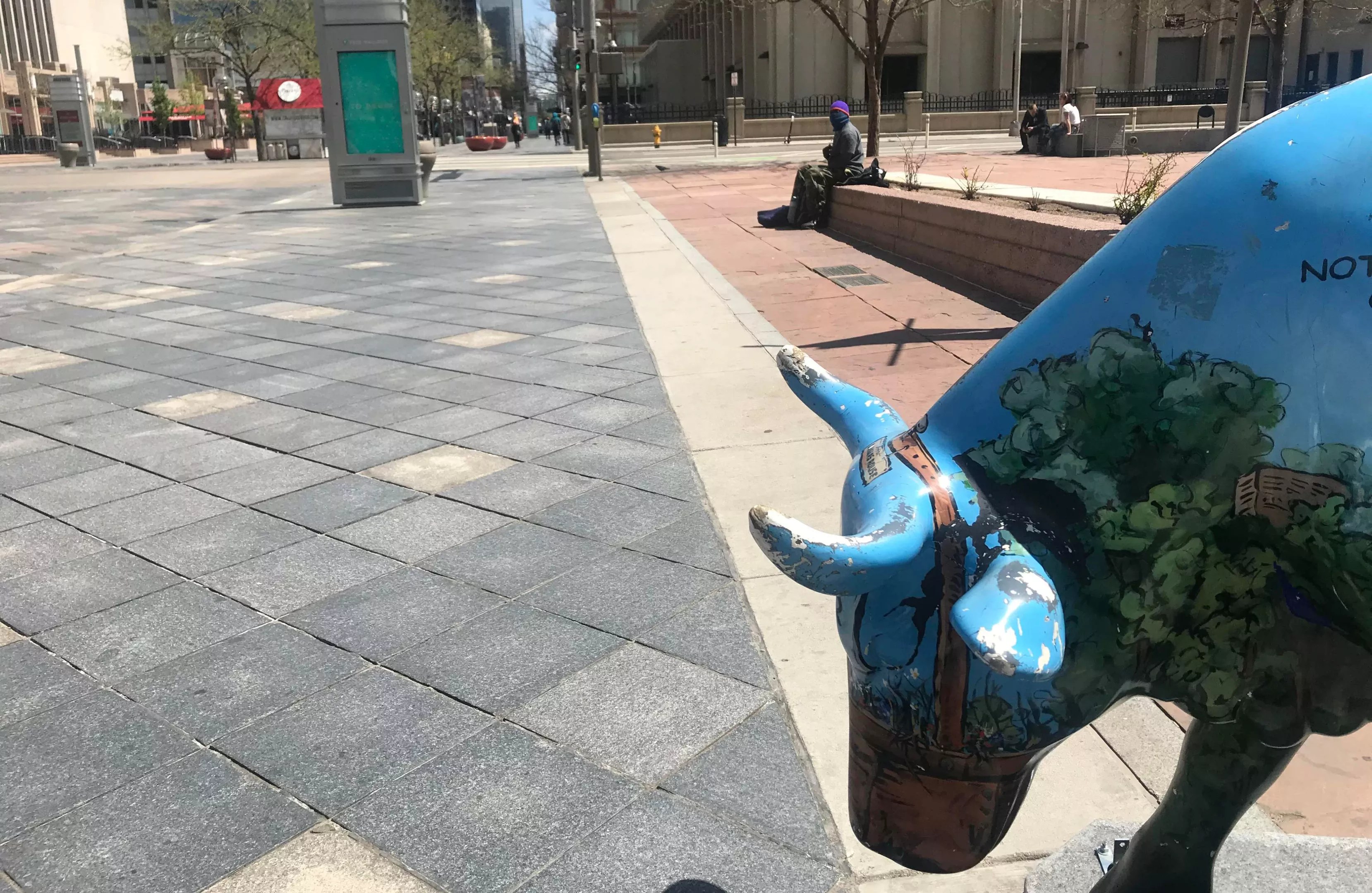 Heading toward Broadway, a group of a dozen people, two of whom were masked, represented the single largest collection of humanity in the vicinity. Second place belonged to three Denver police officers, who gabbed next to two cruisers parked at an intersection. Face coverings? Nope.