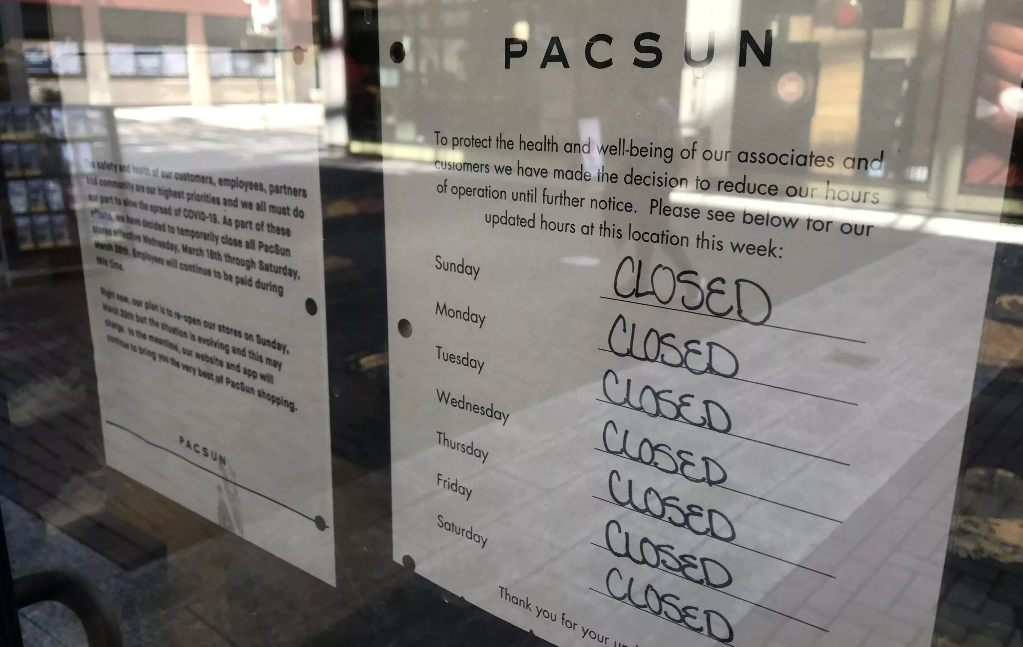 A sign listing the daily hours at a PacSun located at Denver Pavilions is extremely consistent.