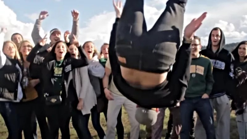 A CSU student flips at being in a 2015 I’m Shmacked video.