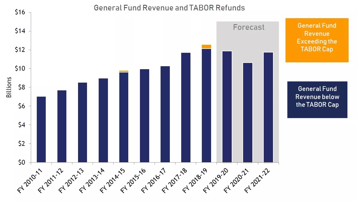 Accompanying graphics help flesh out the story. The general fund calculations show a decline for fiscal year 2020-2021 in the billions, after which the 2021-2022 forecast should inch closer to the amount counted in 2019-2020.