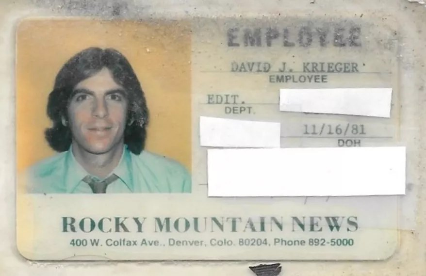 Dave Krieger’s identification card during his earlier days at the Rocky Mountain News.