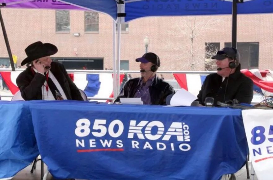 Former Rocky Mountain News baseball writer Tracy Ringolsby with Dave Logan and Dave Krieger during the period when the latter pair teamed up on KOA radio.