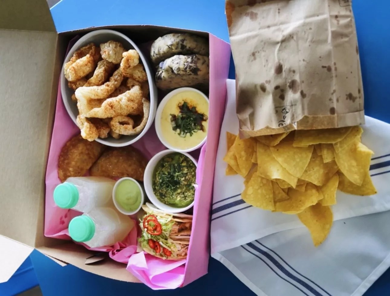 Mister Oso‘s 4/20 boxes – a collection of two margaritas, two Gordo Crunches (think Gordita Crunch from Taco Bell), two empanadas, a bag of BBQ chicharrones, small orders of queso and guacamole, a bag of tortilla chips and two “Big Ass” chocolate chip cookies – will be available all day for $50 each, with box options that come with Higher Grade dispensary gift cards.