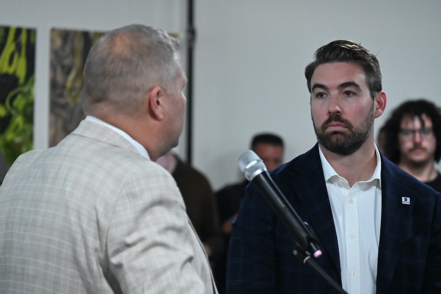 John McKinney, president of the East Colfax Neighborhood Association, called Johnston a “fucking pussy” for not debating Flock cameras in a public forum, a message that got uproarious applause and cheering. Lewis, in a nod to the No Kings protest on Saturday, October 18, said that Johnston signing contracts with Flock without City Council approval is “king shit.” Lewis and Johnston previously spoke about Flock cameras in a Central Park town hall together in September, and while they disagreed about keeping them, Lewis’s arguments were much more toned down last month than they were on Wednesday.