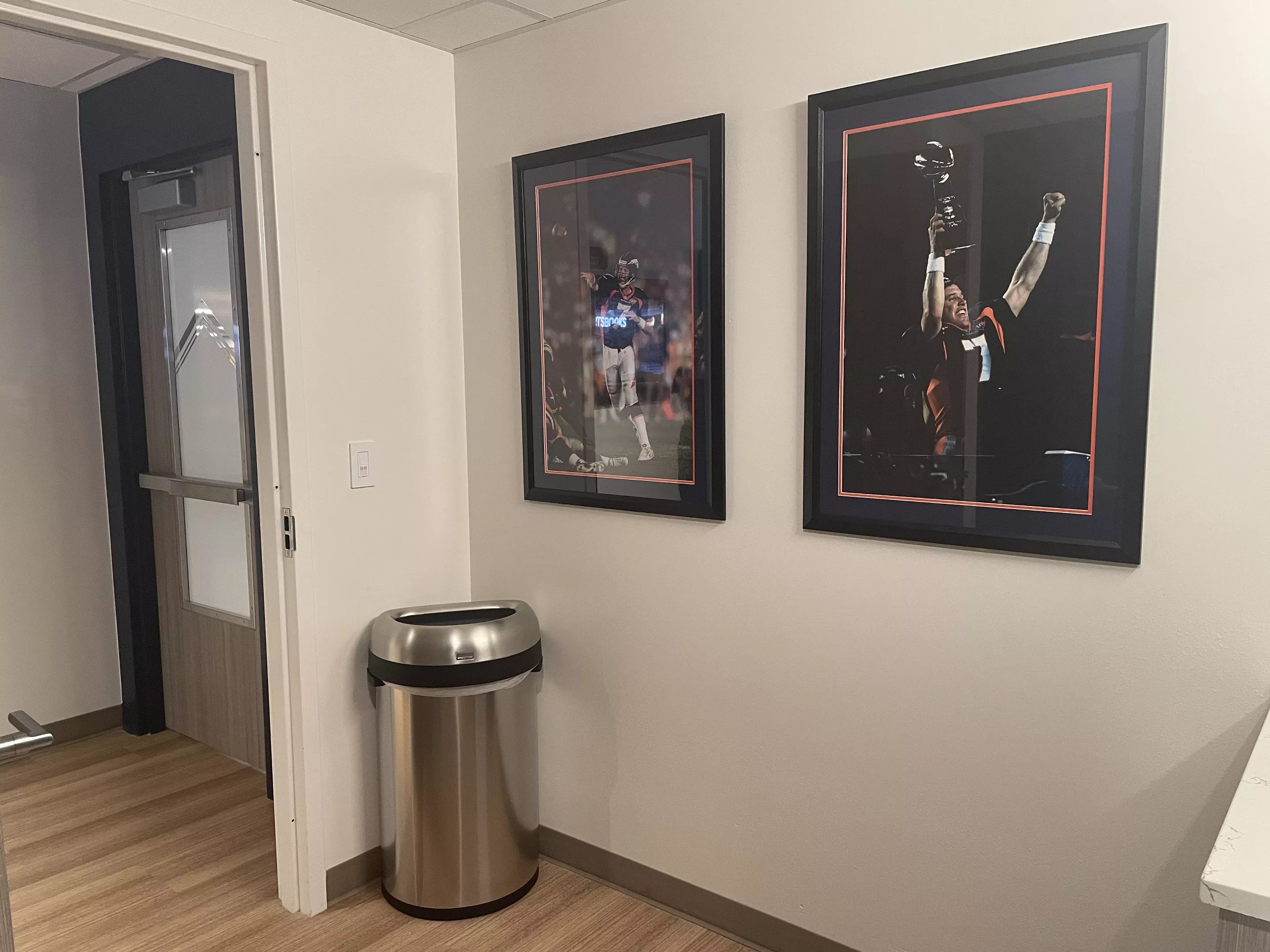 Thomas Evans, the muralist known as Detour, is working on a mural outside the team store that depicts Broncos Hall of Famers, including John Elway, Demarcus Ware, Peyton Manning and Shannon Sharpe. “Make it feel like a gallery on the side of the stadium,” Evans told the media.