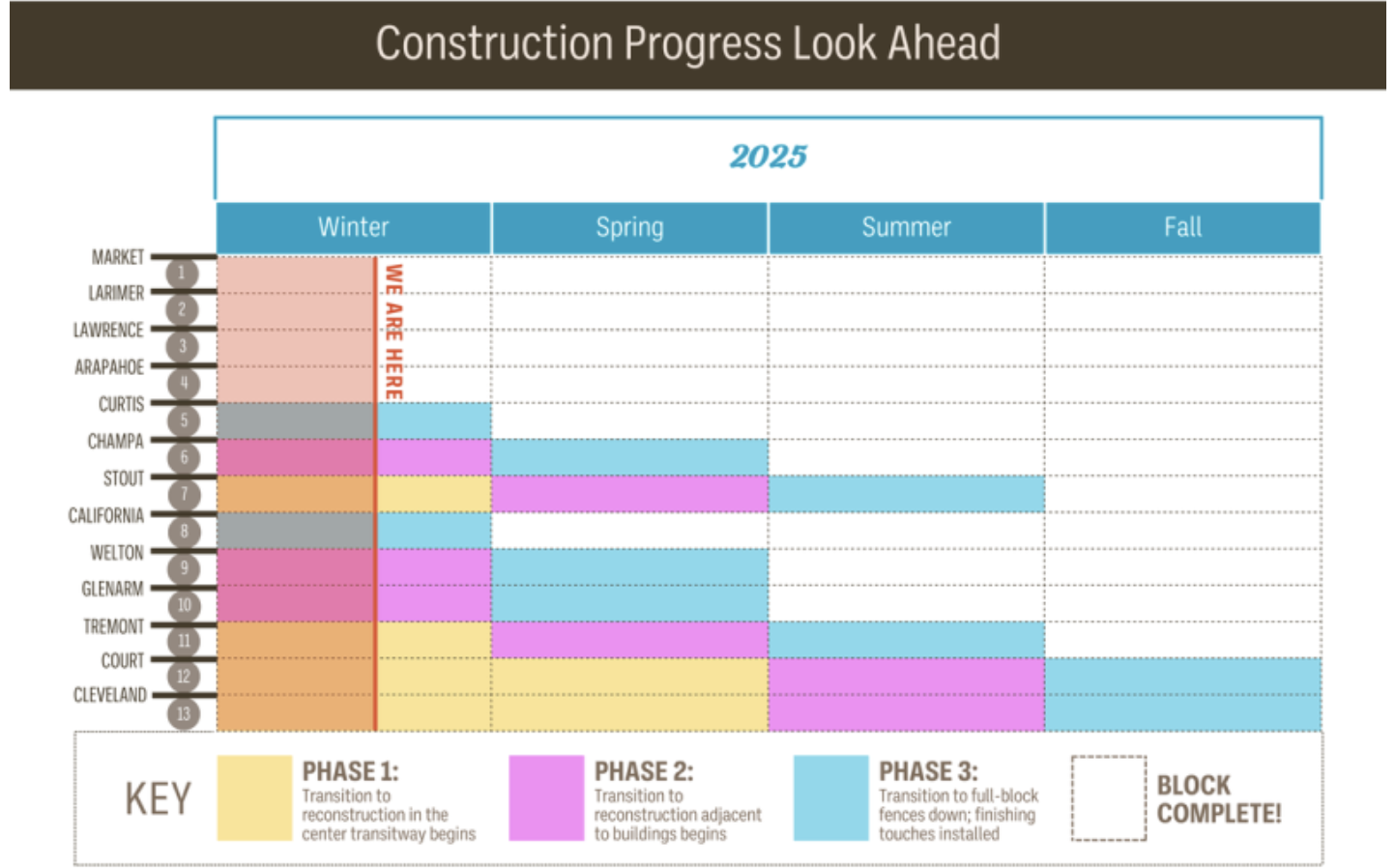“We’re focusing on this opening weekend, May 31 and June 1, and then events and activations all summer as the remaining construction finishes up by the end of the summer so that we can have our final block opening celebration in the winter,” the DDP’s Kate Barton told a Denver City Council committee on February 19.