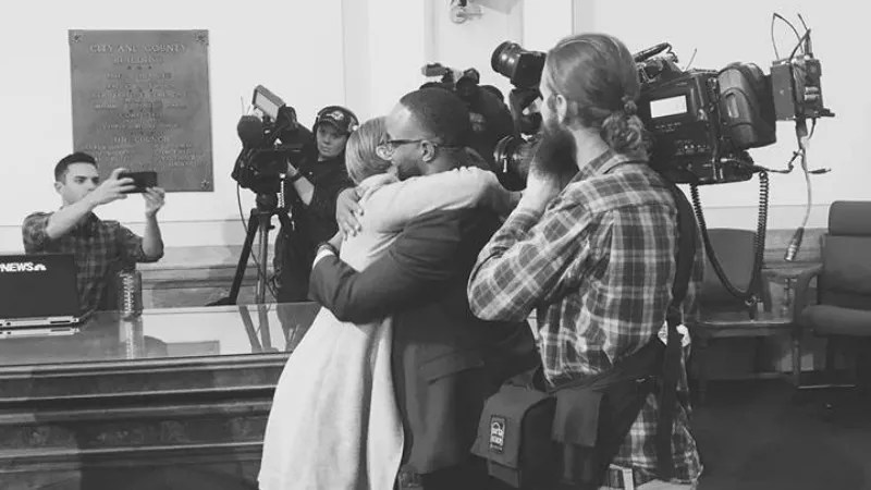Afterward, Councilman Albus Brooks, who touted the proposal to Westword in October, took to Facebook to share photos like the one above, in which he’s seen embracing Harm Reduction Action Center executive director Lisa Raville, a longtime advocate of such facilities, which are also known as safe-injection sites. The images were accompanied by remarks that attempted to put the concept in context.