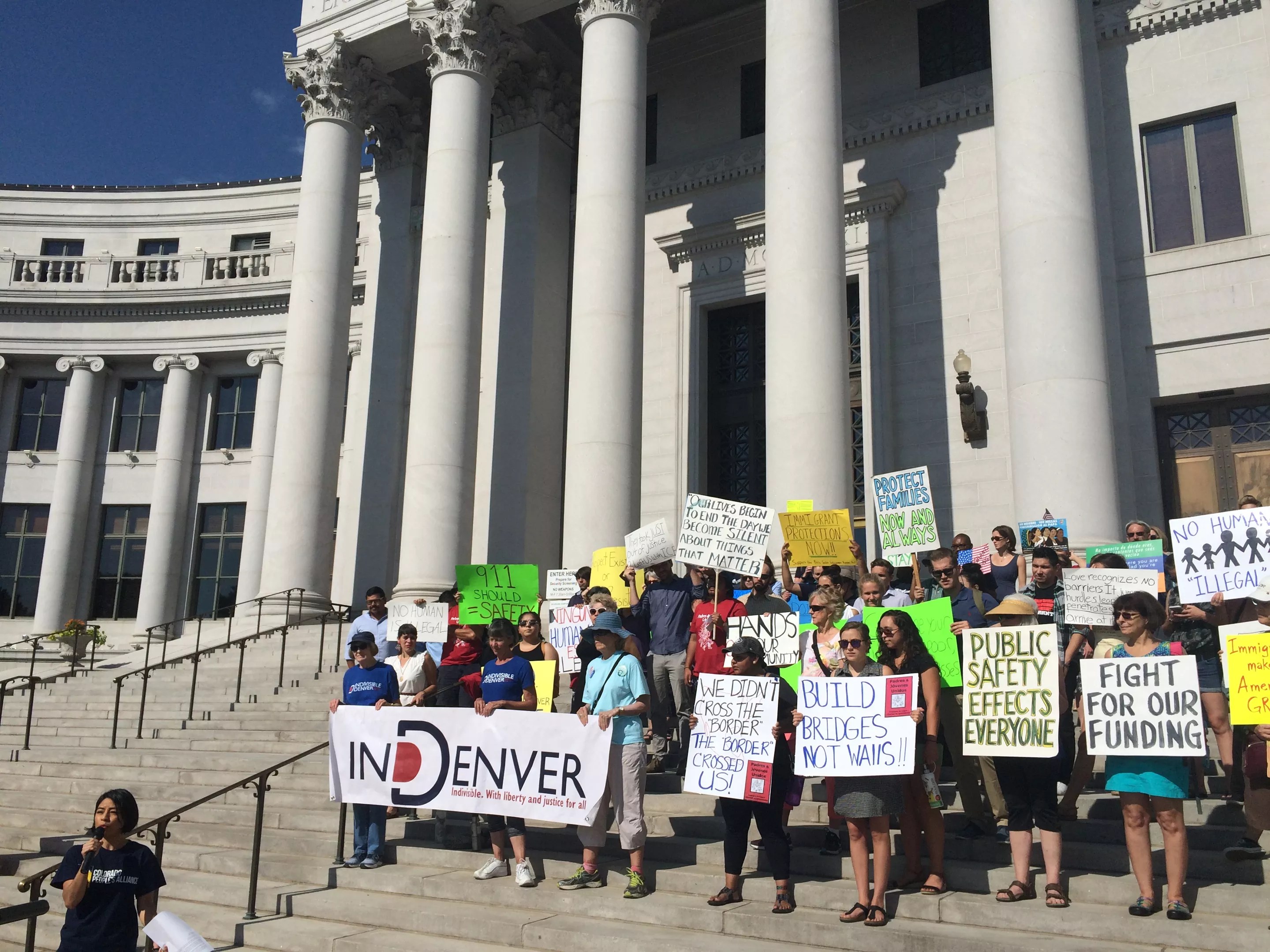 Immigration activists gathered today, August 2, at the Denver City and County Building to show their support for the proposed sanctuary city law.