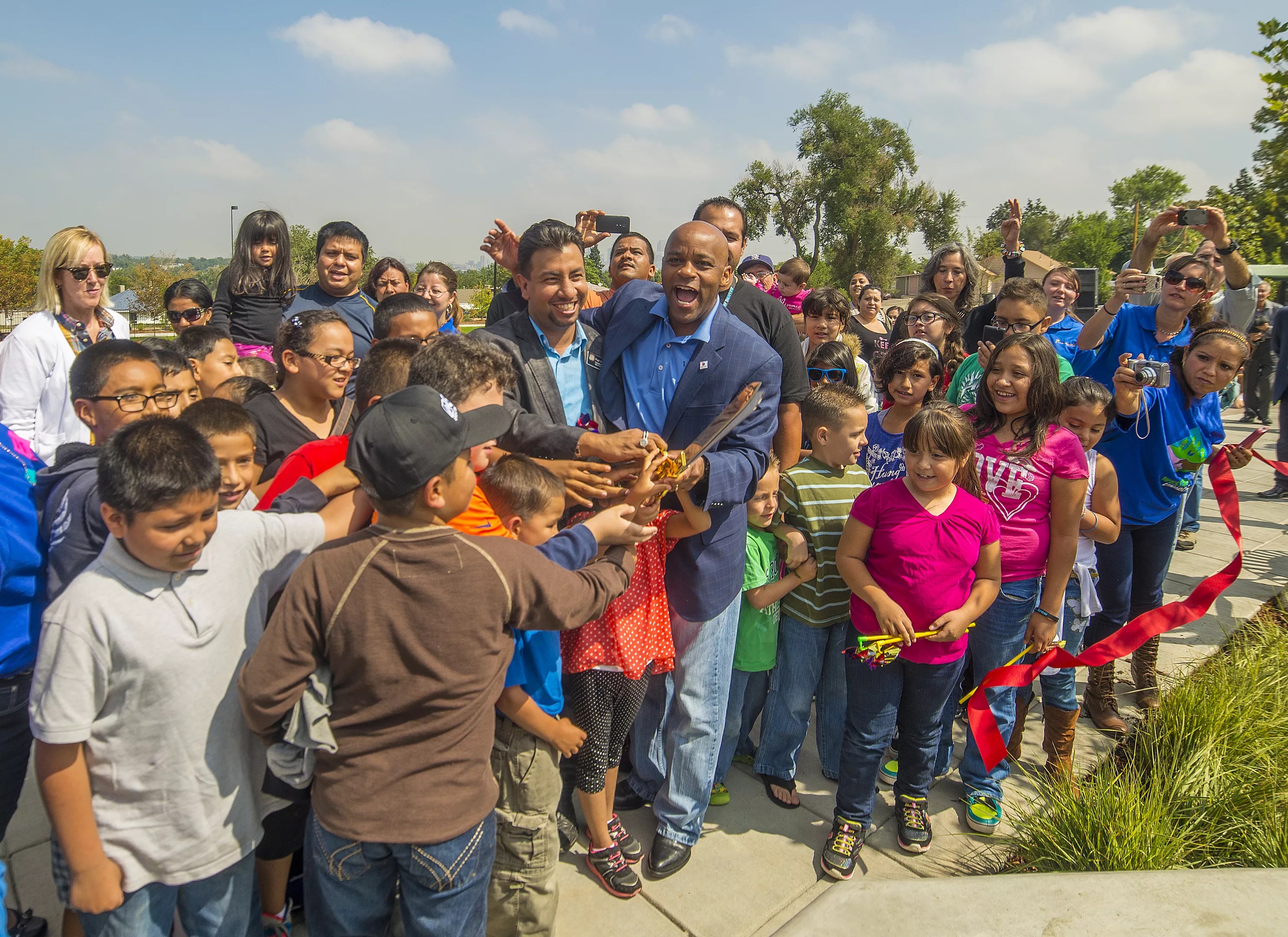 Paul López and Mayor Michael Hancock at Cuatro Vientos Park.