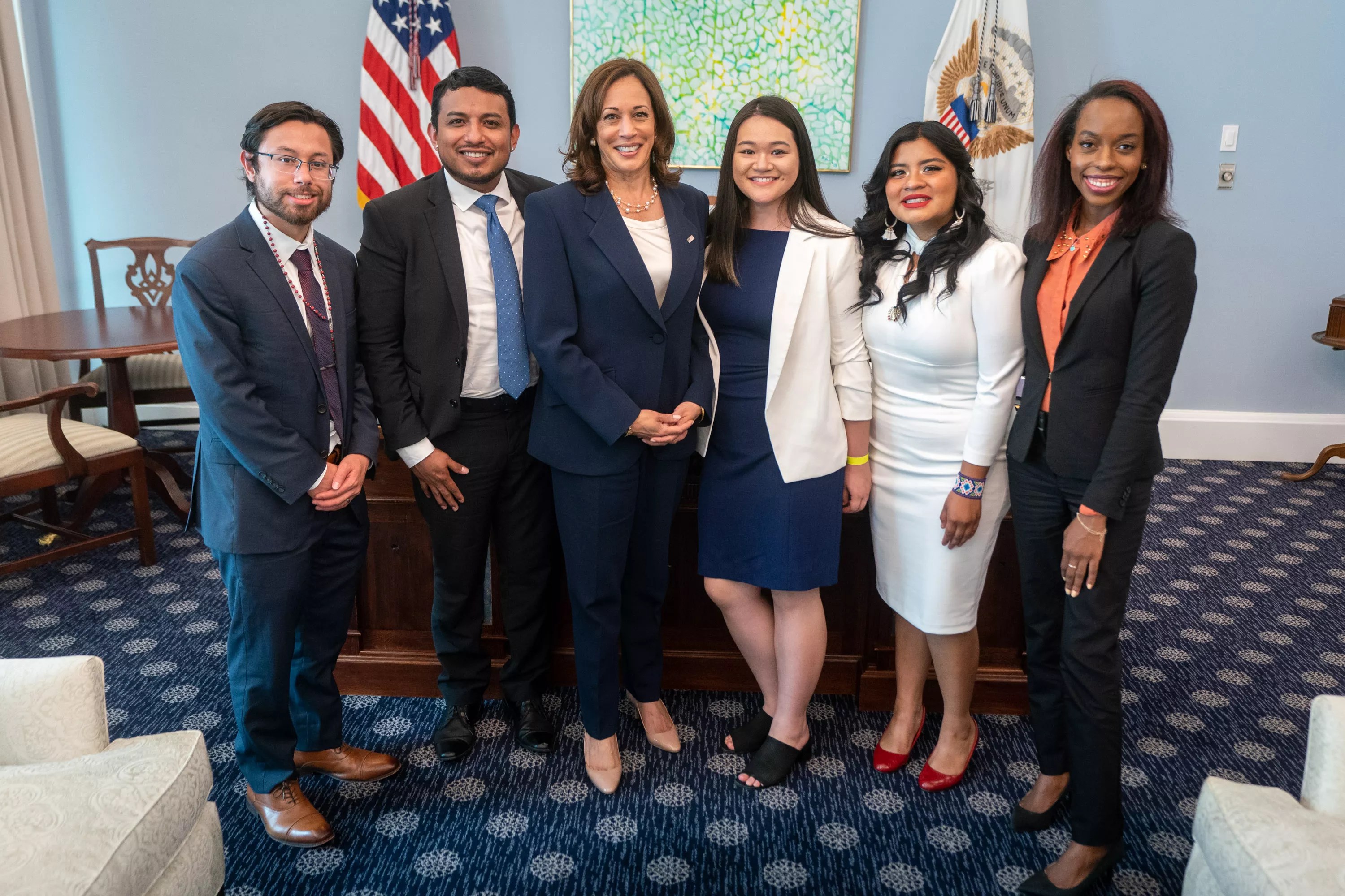 Vice President Kamala Harris with Dreamers, including Alejandro Flores-Muñoz.