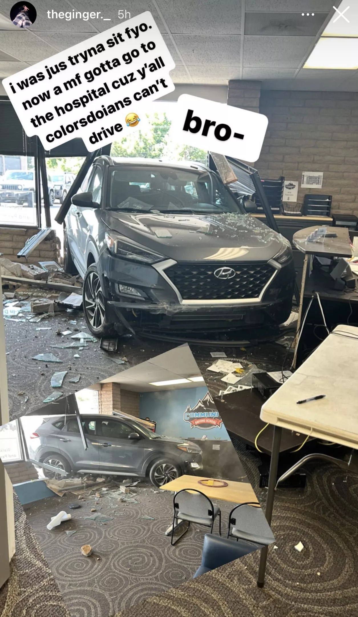 An Instagram user named @theginger._ posted pictures from inside the Lakewood driving school, showing the aftermath.