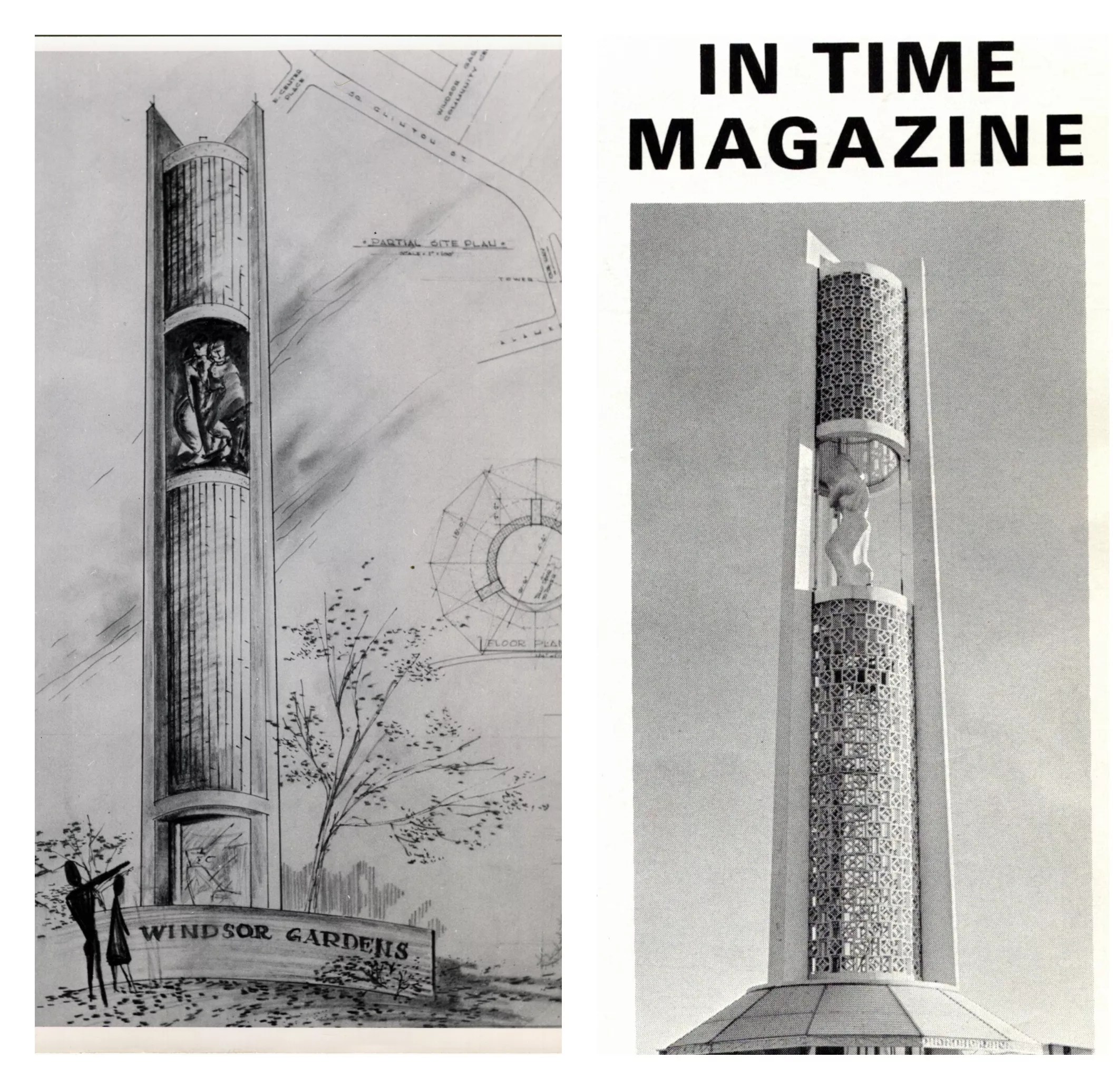 An illustration of the tower and its appearance in a 1968 edition of Time magazine.