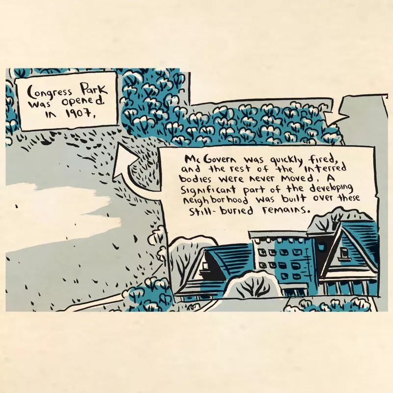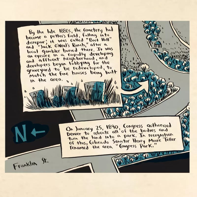 This is the spooky season, and scary stories abound all over Denver…some of them right under our feet. Karl Christian Krumpholz, who’s explored the changes on many of Denver’s streets (including both East Colfax and West Colfax Avenue) as well as at Denver’s Union Station, decided to dig deeper this time, unearthing the horrifying history of Cheesman Park.