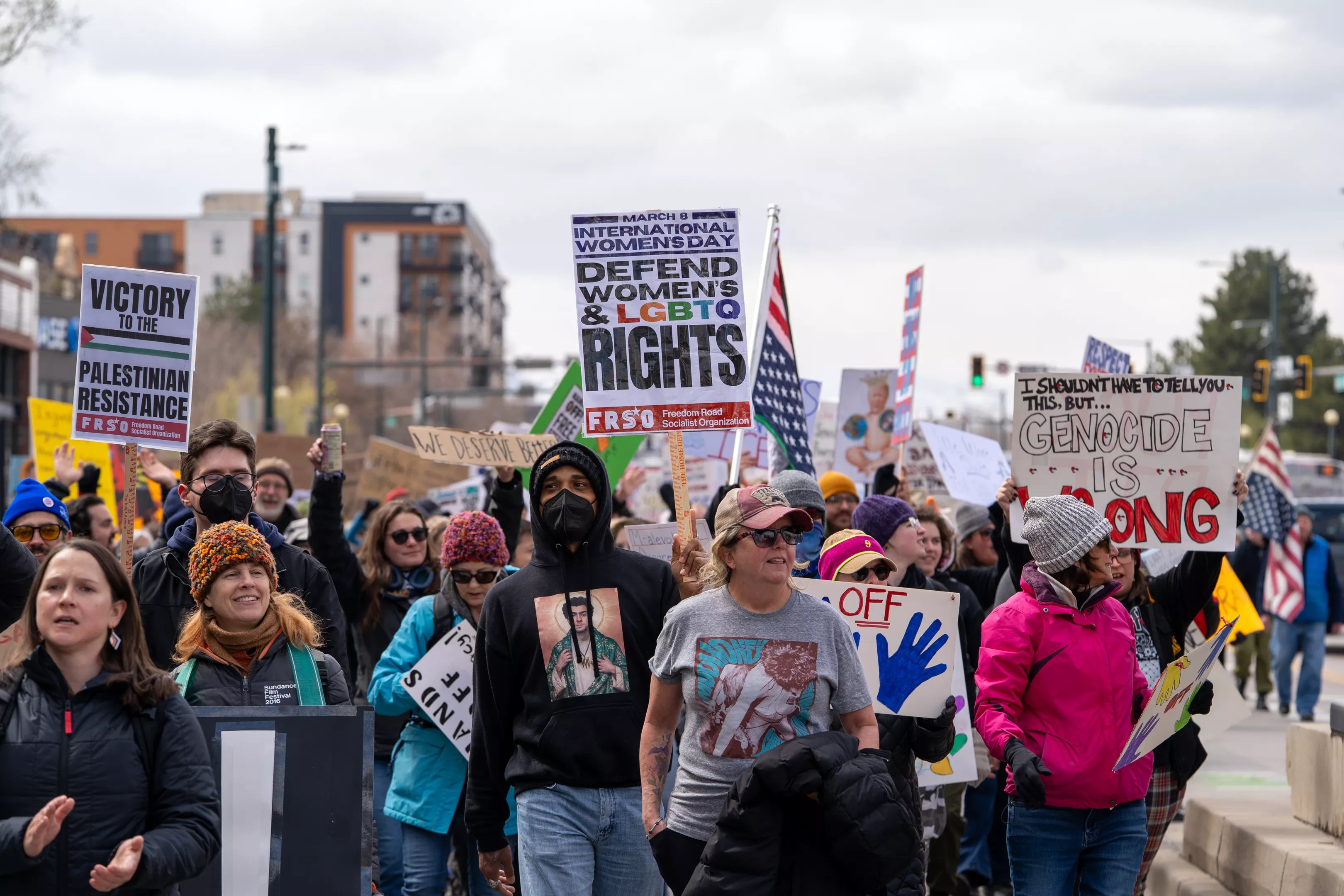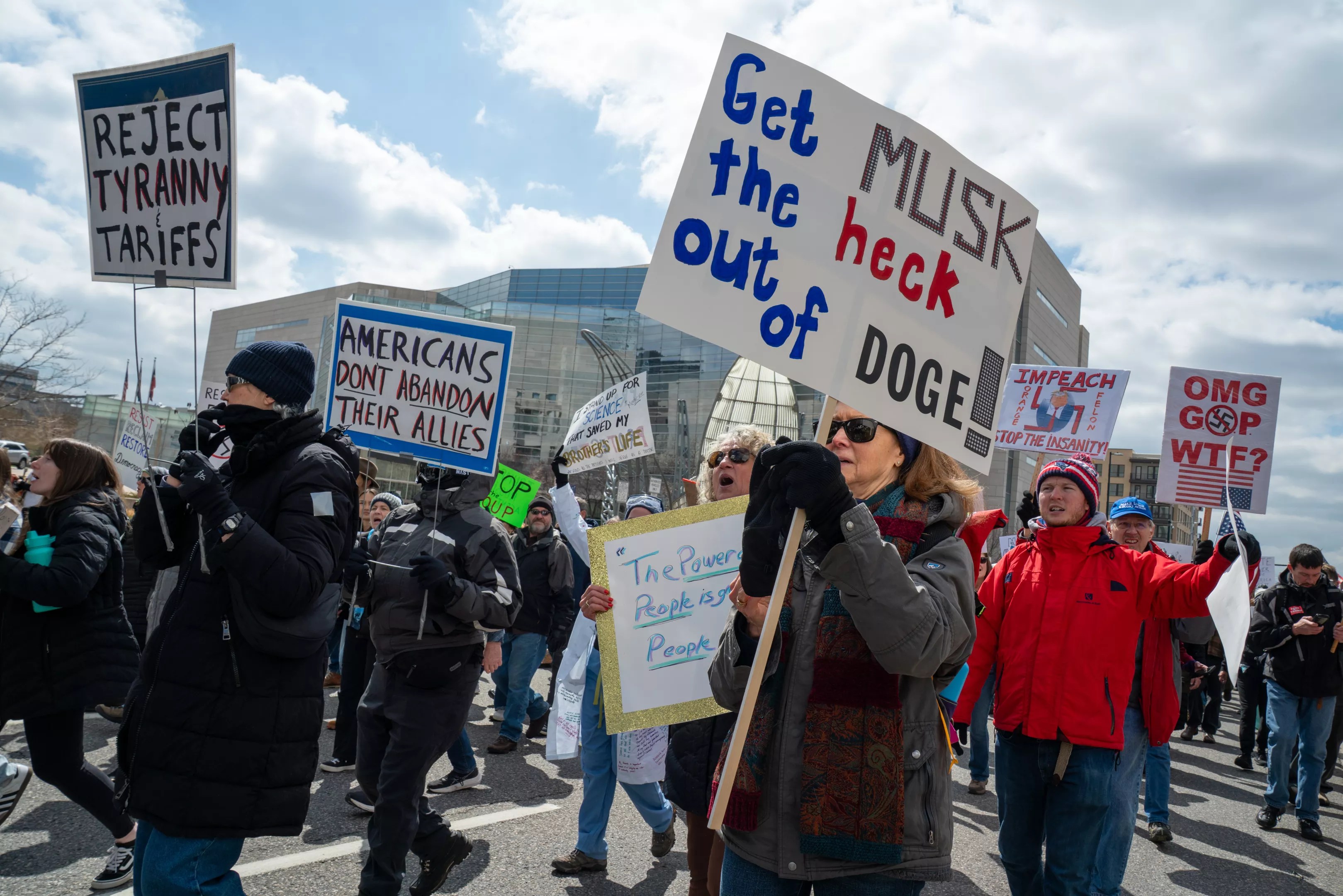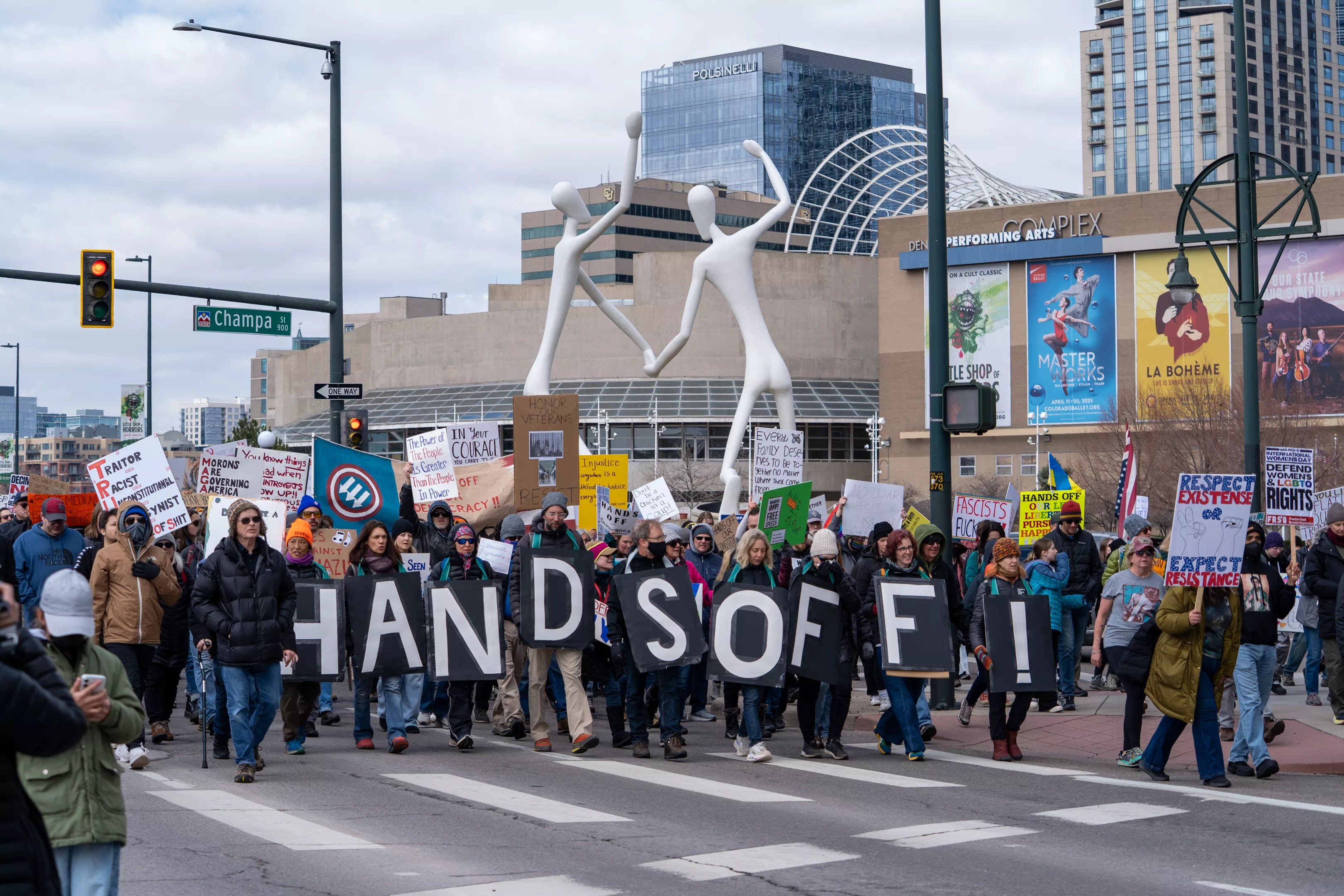 In Denver, the protest started at the Colorado State Capitol, the site of many recent political protests. On this cold Saturday, thousands of participants rallied to protest the administration’s actions, emphasizing the detrimental impact on local communities and vulnerable populations. Many of the protesters took to the street, marching downtown.