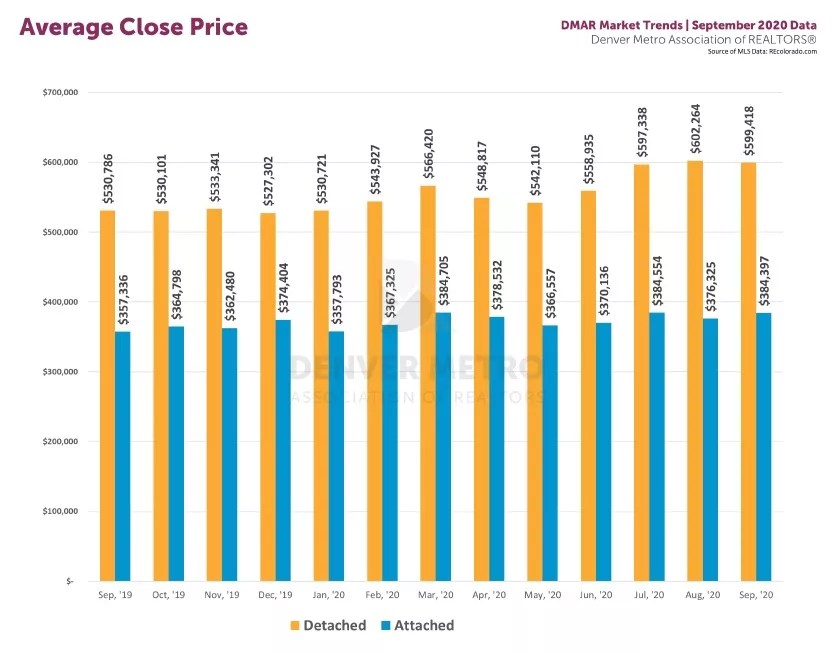 In August, the average home price in the Mile High City blew past $600,000 for the first time. While that mark wasn’t quite eclipsed in September, the situation definitely hasn’t improved. According to the latest market trends report from the Denver Metro Association of Realtors, house hunters are facing “the toughest market to buy a home in metro Denver’s history.”