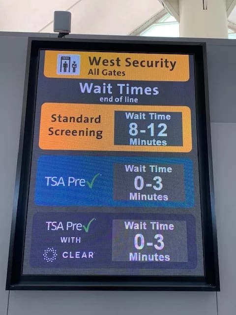 On Monday, February 5, at 1:32 p.m., I turned the corner on Level 6 of Denver International Airport to reach the new West Security and commence a promised “8-12 minutes” wait for my turn in the airport’s new and improved security system. The sign indicated that TSE Pre and CLEAR wait times during this last day of the soft opening were only “0-3.”