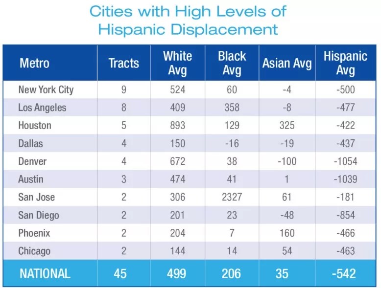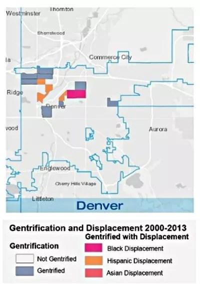 A greater number of Hispanics, on average, are being displaced from the most rapidly gentrifying Denver neighborhoods than in any other major U.S. city.