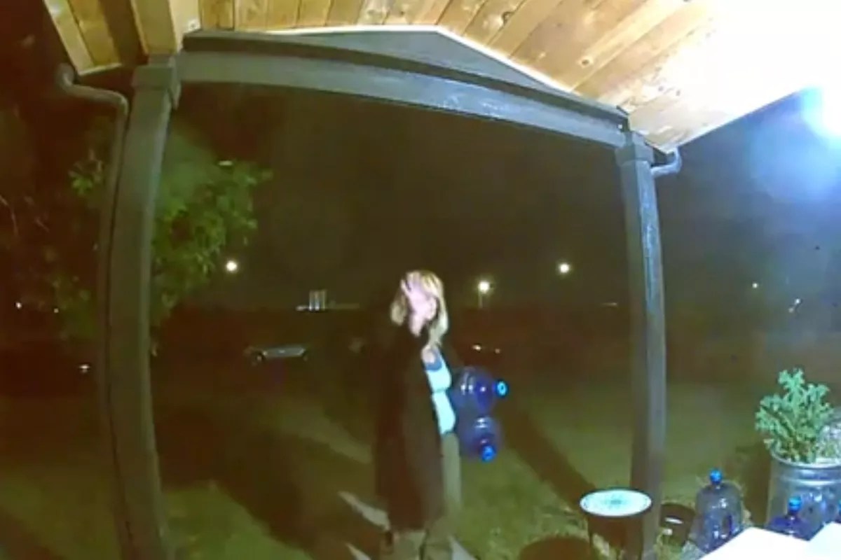 A woman waves at an Overland resident’s security camera while stealing water jugs. Residents who live near the La Paz site have been vocal about their concern that theft, trespassing and littering have increased since the site opened in March.