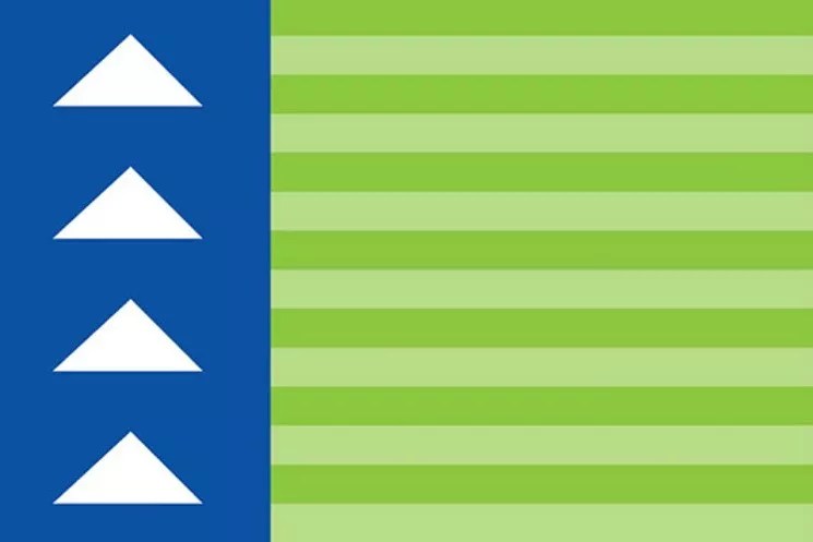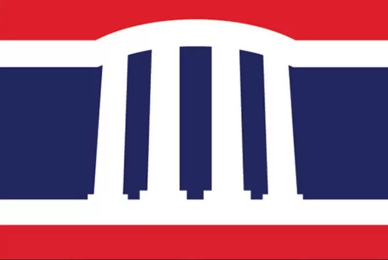 Virginia Village: “Krisana Park and Lynwood, two areas within this neighborhood, contain some of the finest examples of mid-century modern residential architecture in the US. The Mid-Century modern movement was a reflection of the International and Bauhaus movements. The colors and shapes of the flag reflect these designs.”